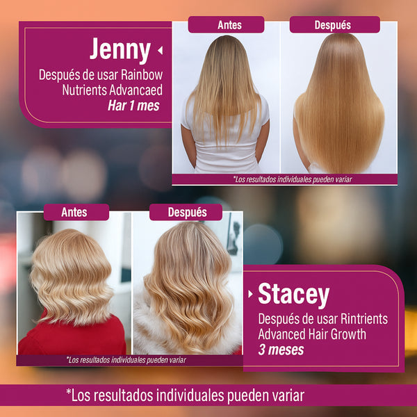 Una fórmula premium de Rainbow Nutrients – dos frascos por el precio de uno – diseñada con Biotina (10 000 mcg), colágeno, OptiMSM®, Saw Palmetto y complejo de vitaminas B, C, D, E y Zinc para atacar la raíz del problema.