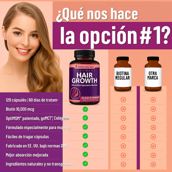 Hair Growth Advance está formulado con ingredientes naturales, libres de OGM y sin gluten. Sin embargo, si tienes alguna condición médica o estás en tratamiento, consulta con tu médico antes de consumirlo.