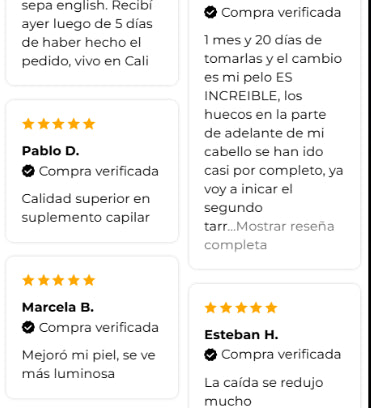 Los primeros resultados suelen verse entre la segunda y cuarta semana, dependiendo del metabolismo y constancia de uso. La mayoría de usuarios reporta mejoras visibles en la fuerza y caída del cabello tras el primer mes.