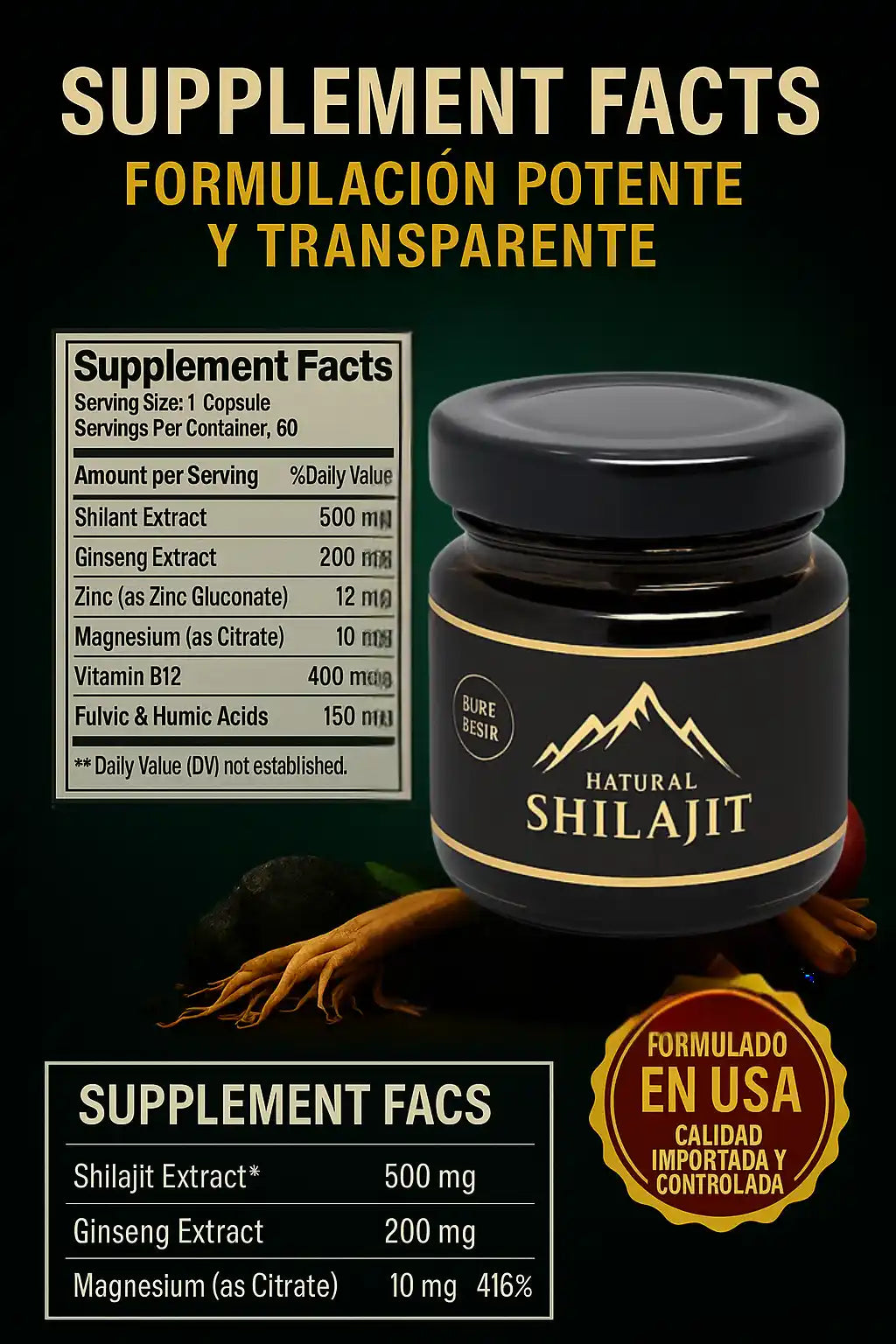 El Shilajit contiene potentes ingredientes naturales que reactivan tu energía y vitalidad🔥.